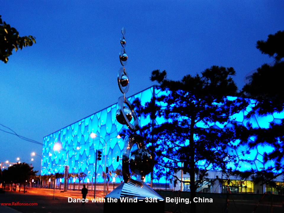 Ralfonso: Vielen Dank, diese Vorstellung gefällt mir (Lacht) ! TWIST ist eine Exploration um die einachsige Bewegungen meiner „DANCE WITH THE WIND“ Skulptur auf einer zweiten Achse zu sehen. Interessanerweise entwickelt sich nun aus dem Zusammenspiel der immer verschiedenen Achsen Positionen auch neue Aspekte in der 3. Dimension. Die Skulptur „DANCE WITH THE WIND“ (10m) entstand für die olympischen Spiele in Peking 2008.