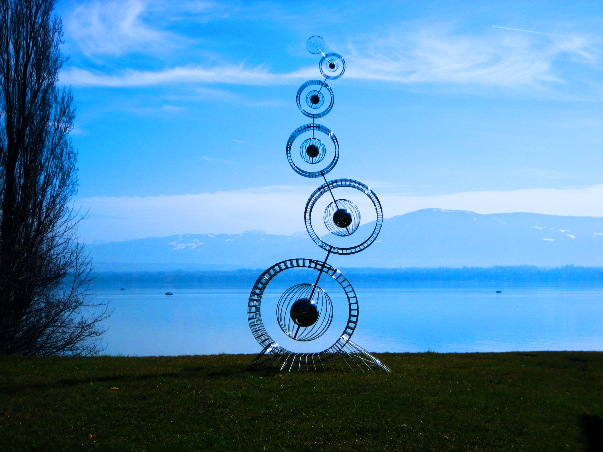 Linossiartstory: Sozusagen hilfst du mit deinen kinetischen Skulpturen auch Stressreaktionen abzubauen, Potenziale zu fördern und die Lebensqualität positiv zu beeinflussen. Eine weitere Skulptur die mir sehr gut gefällt, ist TWIST , diese Windskulptur steht in der Schweiz. Was war hier der Auslöser um diese Skulptur zu schaffen. Wenn ich die Skulptur so betrachte, erweckt es in einem die Vorstellung, wie aufsteigende Luftblasen die sich ins unendliche fortbewegen.