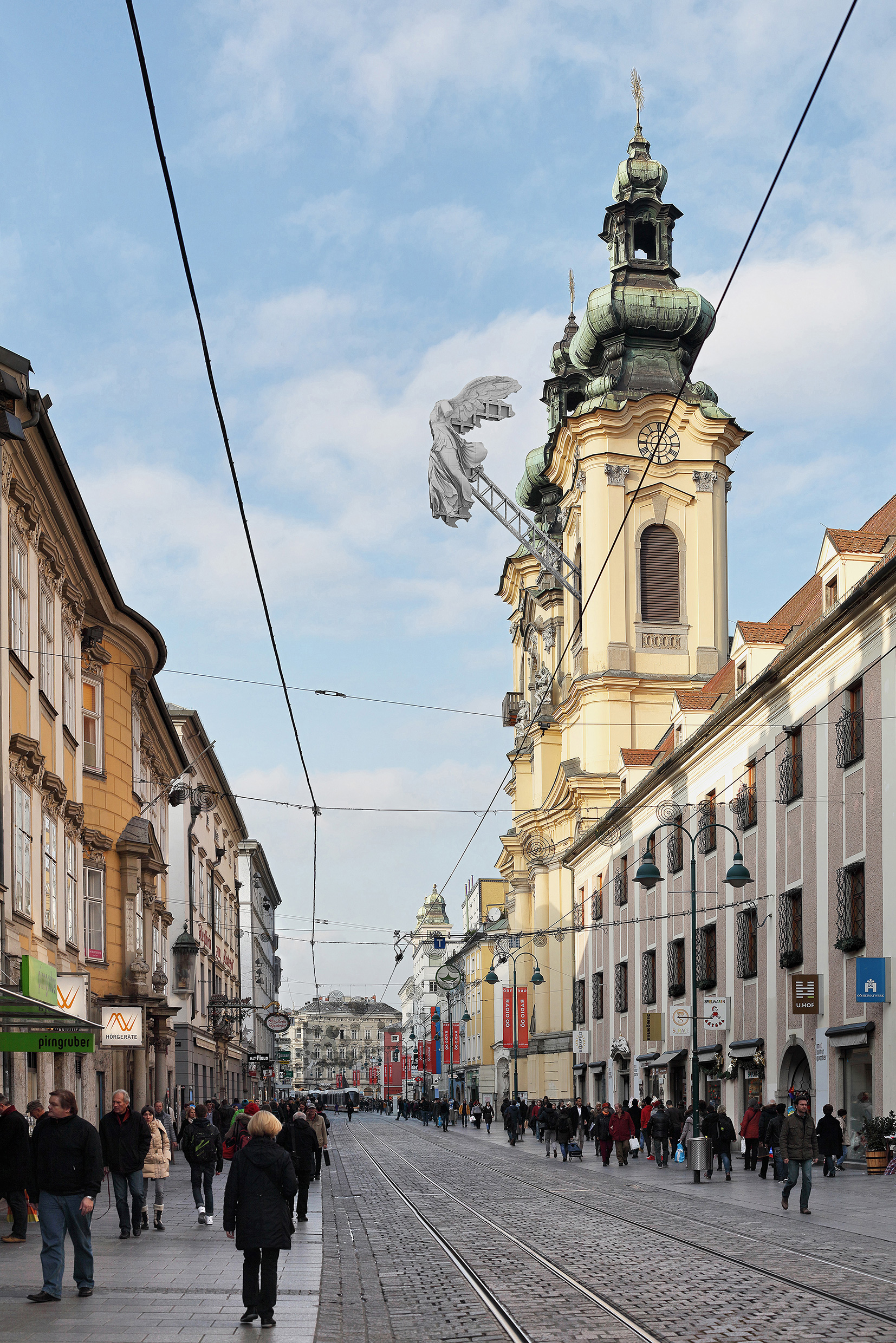 „Die Ausstellung führt zunächst durch eine Versammlung von Alltagsengeln – so wirr und kaleidoskopisch arrangiert, wie sie uns im Hier und Jetzt tagtäglich begegnen: als putzige Himmelsbewohner in der Autowerbung, als adrette Gartenfiguren oder in esoterischen Zeitschriften und Annoncen. Nach diesem Realitätsschub macht ein ausgeklügelter Rundweg den Kopf frei für neue und ganz andere Engelbilder: Das noch vertraute und doch schon überraschende Thema der biblischen Engel wird ausführlich in der Ursulinenkirche behandelt, die sich wie ein Gelenk zu Beginn und am Ende im Ausstellungsparcours verankert. Im Uhof-Dachboden und im Großen Saal des OK installieren Mary Sibande (SA) und Heri Dono (ID) verblüffend andere, fremde Engel. Auf dem Kunstparcours durchs Haus zeigen sich Doppelgänger und Zwillinge als andere Aspekte der Engelthematik. In der Wunderkammer im OK sind die werktätigen Engel zu Gast und auf dem Dach verwandelt Eva Schlegel (AT) den voestalpine open space in einen Spiegelraum. Auf dem Parkdeck der Raiffeisen Kunst Garage wächst ein botanischer Engelgarten, auf dem Passage-Dach wird das Unfassbare der Engel über Schwingungen vermittelt: u.a. mit einer Stahl-Harfe von Josef Baier (AT) und Klangobjekten von der Studierenden der Bruckneruniversität. Elektroakustische Miniaturen zeitgenössischer Komponisten verwandeln den Keine Sorgen Turm in eine vokale Himmelsstiege“.