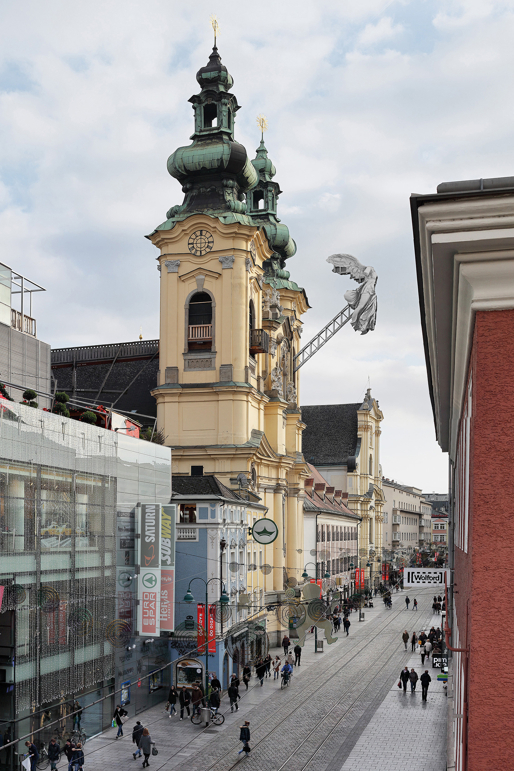 Ein weiteres Objekt, das vor 39 Jahren für den größten Kunstskandal in Oberösterreich sorgte – eine Nachbildung der antiken Siegesgöttin „Nike von Samothrake“ – kehrt als Leihgabe des Deutschen Architekturmuseums Frankfurt/Main (der Haus-Rucker-Co Architektengruppe*) nach Linz zurück und ist beim HÖHENRAUSCH zum ersten Mal seit 1977 wieder zu sehen. Der 15m lange Kragarm der Aluminium-Plastik wird im Glockenturm der Ursulinenkirche montiert. So schwebt die Nike weithin sichtbar über der Landstraße. Als kopflose, geflügelte Nachbildung der „Nike von Samothrake“ erzählt sie über die heidnischen Vor-Bilder der biblischen Engel, woher sie kamen und wie sie sich verwandelt haben. Der „Fetzenvogel“, wie sie damals genannt wurde, dient nicht als nostalgisches Erinnerungsstück, sondern erhält eine neue, präzise Bedeutung bei der Suche nach anderen Engeln im Höhenrausch. Im Anschluss wird sie auf der Kunstuniversität präsentiert.