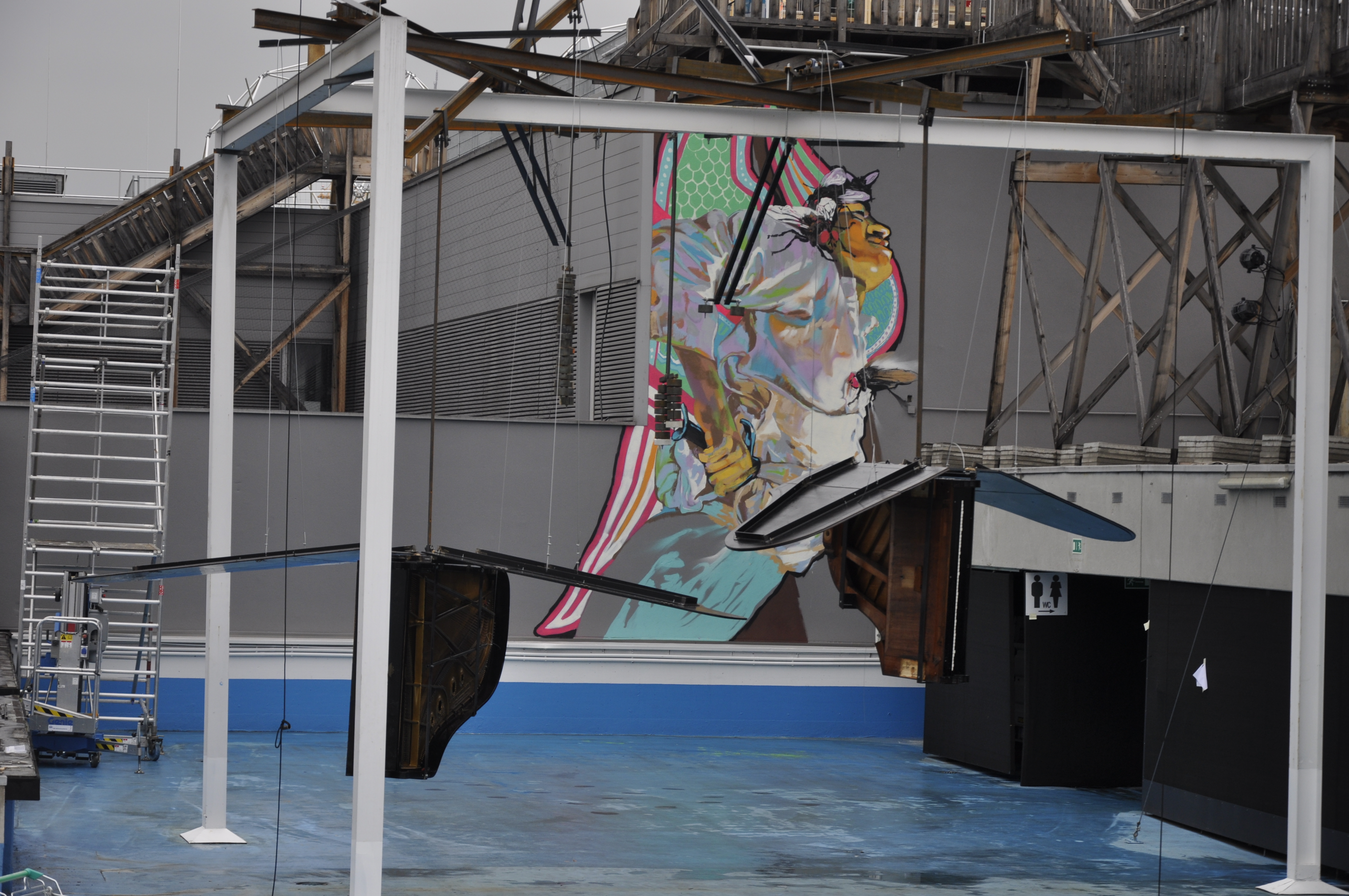 Das wohl spektakulärste Projekt des heurigen Höhenrausch ist die Installation des Künstler Georg Nussbaumer „Flügelengel, 2013/2016“. Er lässt zwei Klaviere (hängend