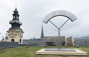 Der Bildhauer Josef Baier wiederum versieht kinetische Skulpturen mit Elementen von Musikinstrumenten und lädt so zu einer Benutzung der Klangerlebnisse und Sinneseindrücke ein. Josef Baier hat in Kooperation mit der Anton Bruckner Universität einen Klanggarten angelegt, welcher aus einer Bogenharfe mit 16 Klaviersaiten sowie drei sphärischen Kuppeln im Stil von R. Buckminster Fuller (US-amerikanischer Architekt, Konstrukteur, Visionär, Designer, Philosoph) besteht. Ausgestattet sind die Skulpturen mit Klangplatten, Klaviersaiten und Orgelpfeifen. Zu diesen Objekten wird auch ein Kinder-Workshop: Bewegungszirkus „Wolkenklang und Schattenreich“ angeboten. Konzipiert von Studierenden und Lehrenden der Privatuniversität Anton Bruckner und des Instituts für Musikpädagogik.