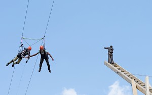 Ein Highlight dürfte auch der HÖHENRAUSCH FLYING FOX werden. Eine Zipline wird über dem OK Platz engelsgleiche Gefühle hervorrufen. Von dem Dach des Passage aus schweben die BesucherInnen des Höhenrausch 2016 wie Zwischen Wesen, jedenfalls zwischen Himmel und Erde, bis zu 20 Meter über dem OK Platz, und die Luft und passieren dabei Ilya und Emilia Kabakovs Installation „How to Meet An Angel“.