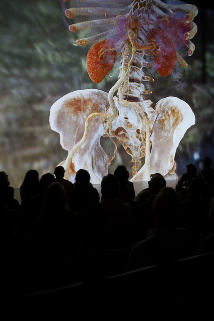 Deep Space 8K präsentierte mitunter „toward 2020 by NHK“. NHK eine öffentliche Rundfunkanstalt Japans. Im August dieses Jahres wurde testweise die erste Übertragung in Super Hi-Vision 8K gestartet. Dazu wurden eine Reihe an 8K-Fernsehprogrammen entwickelt die auch die Liveübertragung der Olympische Spiele aus Rio mit einschließt. Es war faszinierend, die Bildwelten in der intensiveren Darstellung der Realität durch die Technologie 8K Super Hi-Vision auf der 16 mal 9 Meter großen Wand- und Bodenprojektion zu betrachten.