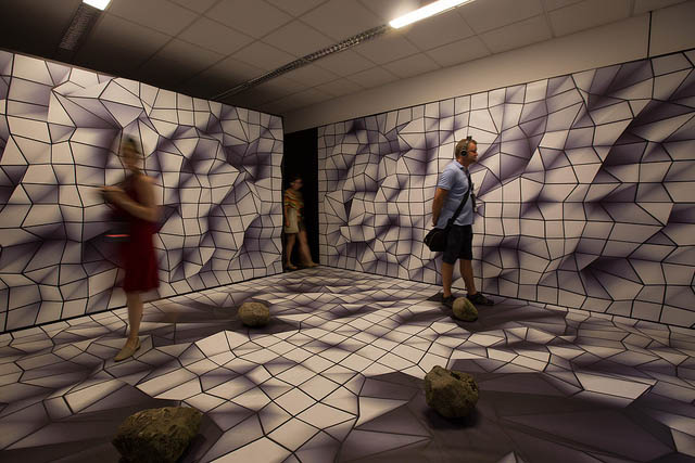 Interessant auch das Projekt von Sonic Wilderness / Steffen Armbruster (DE), Antye Greie-Ripatti (DE). Hier handelt es sich um ein interaktives Audiosystem, mit dem sich digitale Sounds durch Bewegung im Raum steuern lassen und grafische Elemente geben dem Raum Future Effekte. Der digitale Sound wiederum entsteht durch bestimmte Bewegungen des Besuchers und macht die Sache insofern interessant, weil man vom Sound einfach überrascht wird. (siehe auch: www.usomo.de )