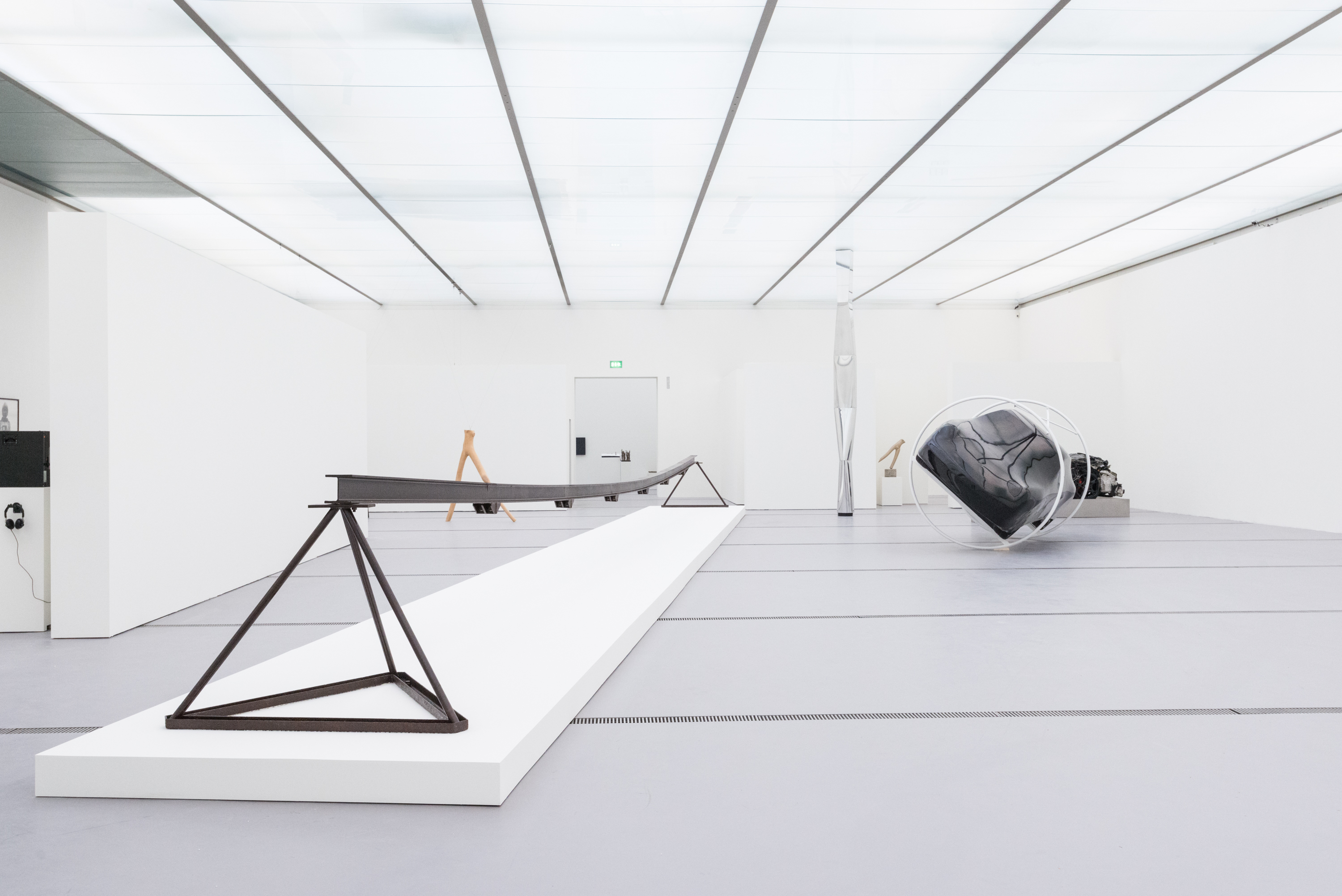 Die „Schiene Kofler“ 1978 ist das zentrale Element im großen Saal und verbindet die Objekte der Ausstellung inhaltlich und räumlich miteinander. Sieben Träger wurden längs zu einer einzigen Schiene verschraubt und auf zwei Eisenständern abgelegt. Die Träger sind ihrer Funktion enthoben.