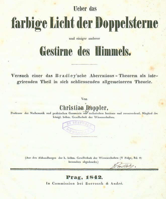 Als Christian Doppler am 25. Mai 1842 in der Böhmischen Akademie der Wissenschaften den Doppler-Effekt „Über das farbige Licht der Doppelsterne“ präsentierte, ahnte niemand, dass Doppler eine bahnbrechende Entdeckung machte und keiner wissen konnte, welche Auswirkungen sein wissenschaftliches Erbe auf die moderne Technik und Medizin haben wird. Heutzutage gilt der Doppler-Effekt als „Jahrtausend-Effekt“.