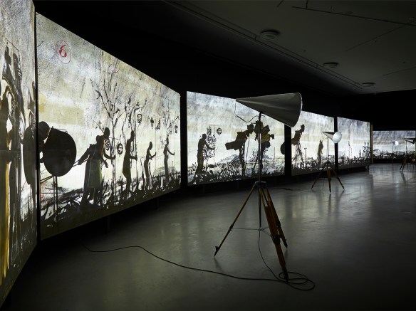 Im MdM Salzburg auf der großen Ausstellungsebene (4) werden sieben raumgreifende Multimedia-Installationen und im Auditorium ein Klassiker von William Kentridge, die bekannten seiner aus Kohlezeichnungen bestehenden Filme „10 Drawings for Projection“ (1989-2011) gezeigt . Auch zwei seiner jüngsten Installationen sind zu sehen: Notes Towards a Model Opera (2015) über die Kulturrevolution in China und O Sentimental Machine (2015), produziert für die Istanbul Biennale, über das türkische Exil des russischen Revolutionärs Leo Trotzki.