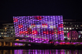 Waltraut Cooper wird 80 und bespielt die LED-Fassade des Ars Electronica Center Künstlerische Friedensbotschaft auf Fassade des Ars Electronica Center