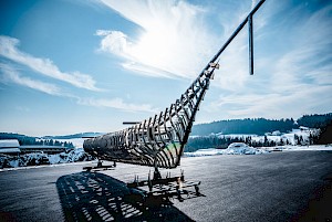 Produziert wird das „Fliegende Schiff“ derzeit bei der Firma Innovametall in Niederkappel. Bei der Montage im April wird nicht nur das Schiff 25 Meter über dem Parkdeck in Seile gehängt, sondern auch der Turm in einen 86 Meter hohen „Masten“ transformiert. Alexander Ponomarev ist nicht nur ein international anerkannter Künstler, sondern auch ein ausgebildeter Nautiker.