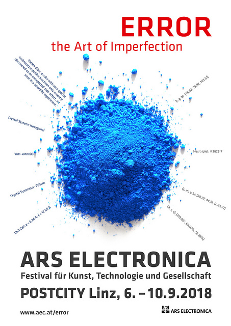 Genau dieses unbekannte Pigment, das YInMn-Blau wird die Plakate und Posters der diesjährigen Ars Electronica zieren. Es passt exakt zum Thema „Error – The Art of Imperfection“, des diesjährigen Festivals. Ob als Wunderquelle für Innovation gefeiert oder als Auslöser katastrophaler Unfälle geächtet, der Fehler, der Irrtum, die Abweichung von der Norm – der Error – stehen dieses Jahr im Mittelpunkt.