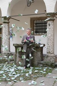 Julius Deutschbauer, „Künstler und das liebe Geld, 2018, Plakat-Motiv für eine Performance im Traklhaus, Format A1 Foto: Galerie Traklhaus