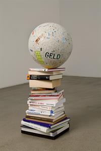 Jochen Höller, „Finanzblase“, 2014, 20 Bücher, Holz, Papier, 85 x 36 x 33 cm Foto: Lena Titz; Jochen Höller