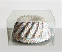 Ingrid Pitzer, Geldkuchen, 2001, Original-Banknoten geschreddert, gepresst, Plexiglas, 9 x Ø 20 cm Sammlung Haupt, Berlin / Foto: Hermann Büchner © Bildrecht, Wien