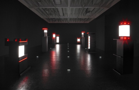 Betritt man den Raum, wird man von Finsternis umgeben bzw. empfangen, es dauert ca. 20 Sekunden, dann erscheinen plötzlich Lichteffekte von den im Raum installierten Skulpturen. Diese vertikalen, architektonischen Skulpturen unterschiedlicher Größen sind mit einer Vielzahl von LED-Leuchten und Reflektoren ausgestattet – Produkte der boomenden Fahrzeugbeleuchtungsindustrie.