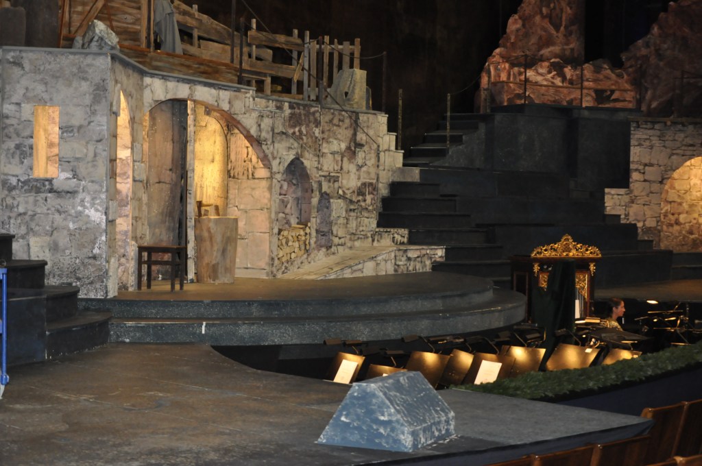 Dietmar Solt gestaltete ein faszinierendes Bühnenbild, welches mit unterschiedlichen Lichtstimmungen eingefangen wird und so zur besonderen Wahrnehmung des Stückes beiträgt.