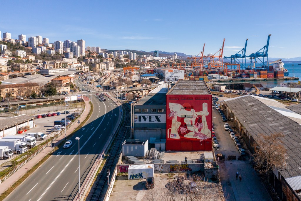Igor Crnkovic, Pilotmedia / Fertiggestelltes Wandgemälde zum Ivex-Gebäude Igor Crnkovic, Pilotmedia / Fertiggestelltes Wandgemälde zum Ivex-Gebäude Die Rijeka-Künstler Jadranka Lackovic und Vladimir Tomié haben Anfang Februar die Westfassade des IVEX-Gebäudes mit einem großen Wandgemälde auf mehr als 200 vier Metern bemalt. Das Wandbild unter dem Namen „Familiar Place/A Familiar Place“ ist das erste Wandbild, das das Internationale Festival der Wandmalereien, Graffiti und Street Art im Rahmen des Programms „Sweet and Salty“ Rijeka 2020 der Europäischen Kulturhauptstadt ankündigt.