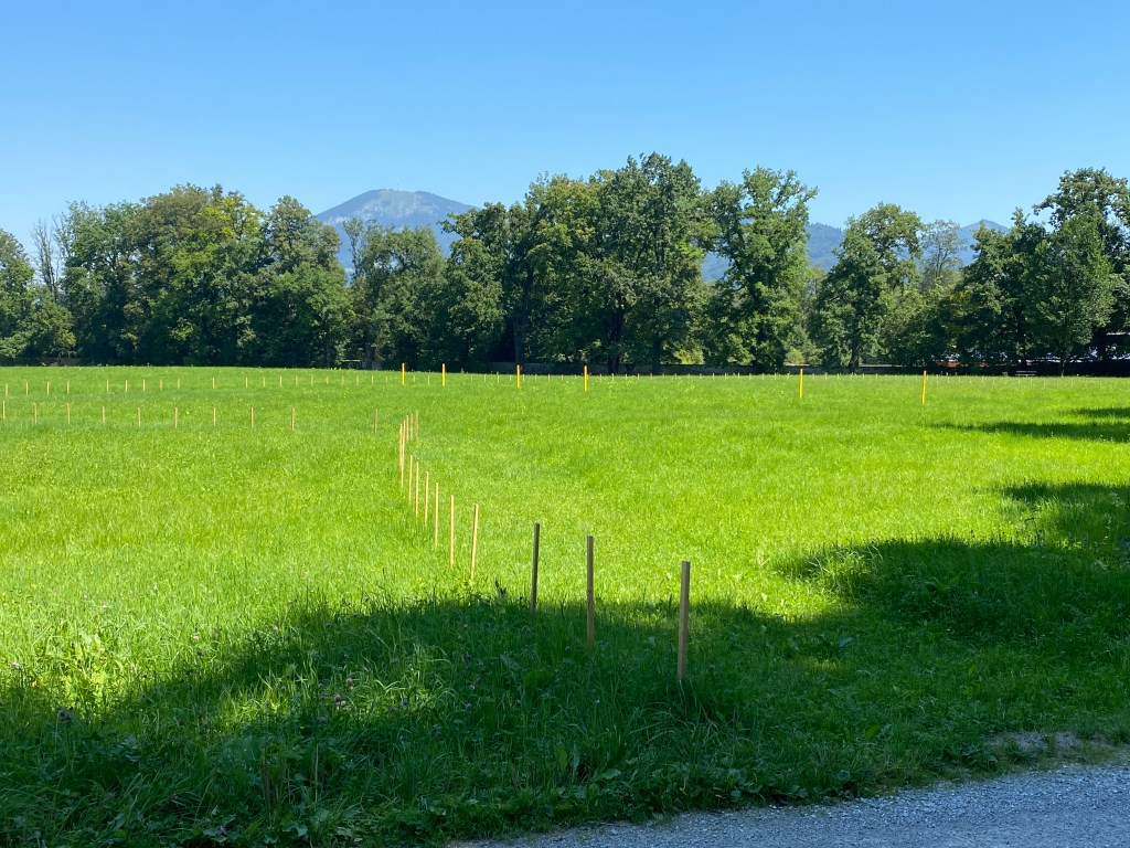 Hellbrunn, hier vermuteten manche vorbeigehende Besucher*innen es wird etwas Neues gebaut. Auch interessant? Aber wenn nur Latten aufgestellt sind und die Hinweistafel nicht wirklich ansprechend platziert, dann kann sowas schon vorkommen. Auch ein Mitarbeiter einer Baufirma, der die Verschallungsbretter für dieses Kunstwerk installierte, wurde des Öfteren angesprochen, was wird hier gebaut? Wird die letzte große Wiese in Hellbrunn nun auch in Baugrund umgewidmet?