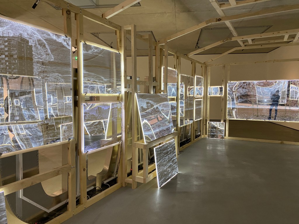 Fasziniert hat mich auch die Installation Arcade/Arcadia in dieser Installation befinden sich 34 handgravierte Acrylglas Spiegel auf LED-Lichtpaneelen wo sich wiederum Gebäude, Landschaften spiegeln, die nach dem berühmten Maler William Turner nachempfunden sind. Das Interessante daran ist, diese 34 Acrylglas Spiegel spiegeln sich auch ineinander in diesem Raum. Der Betrachter befindet sich dann ebenfalls in der Spiegelung wie man es auch auf einen meiner Fotos sehen kann. Somit ist auch der Betrachter ein Teil des Kunstwerkes. Jedoch ist der Titel der Installation ein Wortspiel zwischen dem englischen Wort „arcade“, Spielhalle und „arcadia“ dem unerreichbaren Mythos einer idyllischen unberührten Natur.