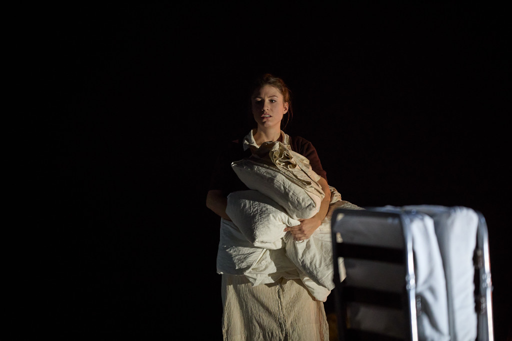 Die enorme Wand der Felsenreitschule wirkt an sich schon erdrückend. In dieser Atmosphäre erleben wir die Ereignisse aus der Sicht Káťas, durch ihr alptraumartiges Gefühl, dass niemand mit ihr sprechen möchte. Das Gefühl des Eingesperrtseins wird aber nicht allein von Mauern oder von einem kleinen Raum verursacht. Jedes Wort, jede Bewegung muss dazu beitragen.