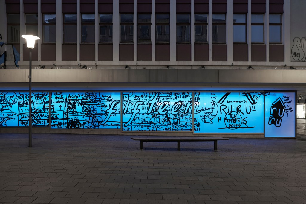 documenta fifteen: Dan Perjovshi, Generosity, Regeneration, Transparency, Independence, Sufficiency, Local Anchor and most of all Humor, 2022, Fridericianum, Kassel, 10. Mai 2022