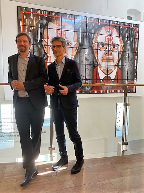 Warum dieser Prolog? Denn Gilbert, der ursprünglich aus St.Martin in Thurn in Südtirol stammt, war vor seiner Weltkarriere Schüler der Bildhauerschule Hallein. Die Bildhauerschule Hallein feiert sein aktuelles Jubiläum zum 151-jährigen Bestehen und aus diesem Anlass wurde Gilberts am Ort seiner einstigen Ausbildung als Bildhauer zurückgeholt. Gemeinsam mit seinem Partner George hatte er das Thema Skulptur seit den 1960er Jahren entwickelt und zwischenzeitlich hat er Welt-Kunstgeschichte geschrieben.