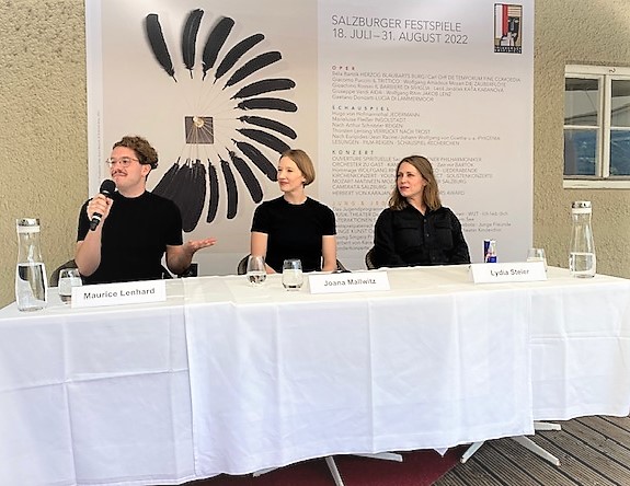 von li nach re: Maurice Lenhard (Dramaturgie) Joana Mallwitz (Musikalische Leitung) und Lydia Steier (Regie) Foto: Christa Linossi