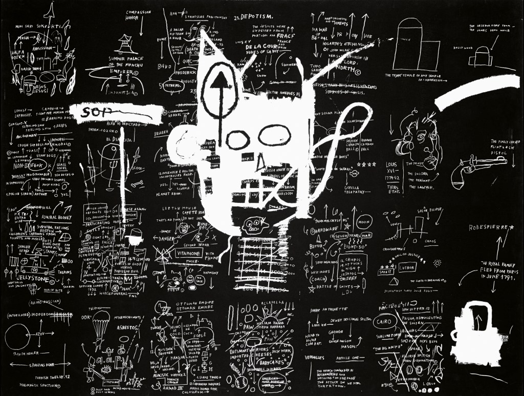 „Alles Geplante und akribisch Organisierte in der Kunst wird bei ihm hinweggefegt: auch das ein Sinnbild seiner Kritik an der bestehenden Gesellschaftsordnung und zugleich ein Reflex der zerstreuten, ja in Stücke zersplitterten Wahrnehmung auf der Straße, von tausenden von Eindrücken, die auf uns hereinstürzen. Basquiat nimmt auf, was ihm in den Straßen New Yorks begegnet: Namen und Zeichen, Figuren und Bilder. „Jean-Michel Basquiat war radikal in seiner Kunst. Fragen von Identität, Diaspora, Sklaverei und Alltagsrassismus finden sich in einer einzigartigen Stilistik wieder, welche es Basquiat ermöglichte, die Vergangenheit mit seiner Gegenwart, bis in unsere Zeit hineinzuverbinden. Seine Copy-Paste-Technik nahm unsere heutige Form des Arbeitens und Kommunizierens in einer digitalen Welt vorweg. Er kreierte Wissensräume aus Zeichen, Symbolen, Worten und Figuren, schlichtweg aus allem, was ihn umgab, seien es Rezeptionen der Geschichte, der Kunstgeschichte, wissenschaftliche Fakten, Comics, Hitchcock Filme, Fernsehsendungen, Erzählungen, Musik, Sport oder auch Zeichen und Symbole von Menschen in Obdachlosigkeit“.