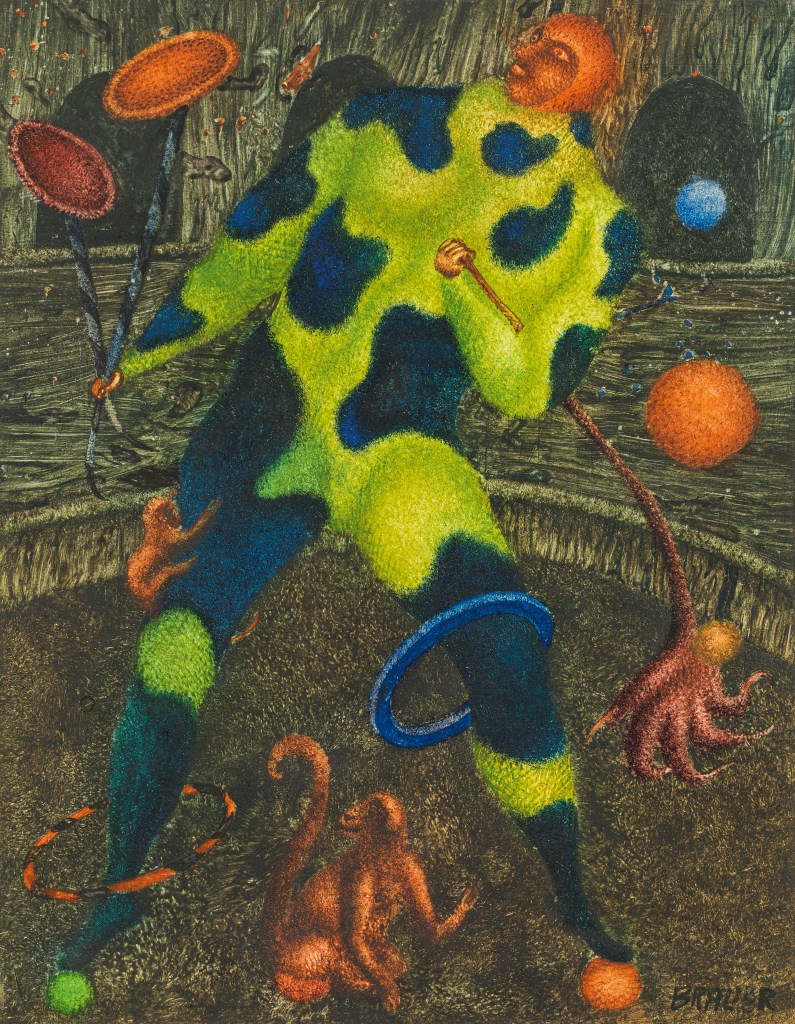Arik Brauer, der zum Kern der Phantastischen Realisten gehört, war schon vorher als gegenständlicher Maler tätig. Typisch für Brauer ist sein Werk „Equilibrist, 1973“. Brauer suchte das „Phantastische“ in seinen Motiven oft, aber nicht ausschließlich in der Darstellung des Natürlichen oder in der Verschränkung von Natur und Kultur. Die Gouache „Equilibrist, 1973“ bezeichnet einen Gleichgewichtskünstler im Allgemeinen und einen Seiltänzer im Besonderen. Der Zirkus als Halbwelt der Illusion.