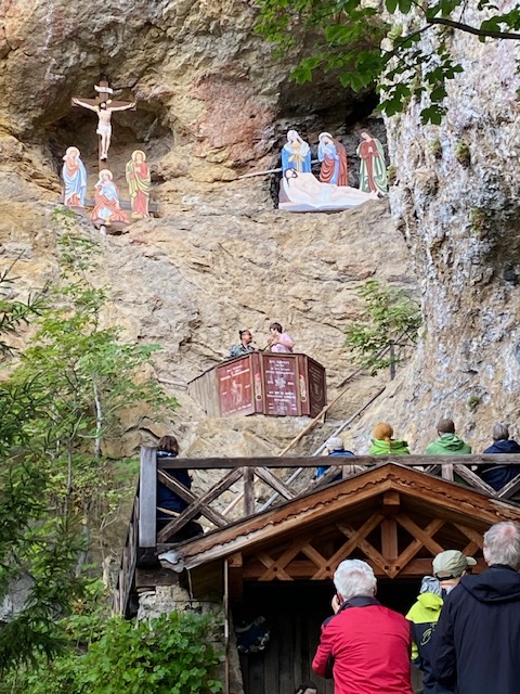 Die Musik hallte zwischen den Felswänden, getragen von der Kanzel tief im Berg. Oberhalb lauschten die steinernen Heiligen mit Christus dem Konzert – eine Szenerie, surreal und berührend. Wanderer und Jazzliebhaber hatten sich auf den Weg gemacht, um diesen besonderen Moment zu erleben. Die Stimmung war still, konzentriert, fast meditativ.