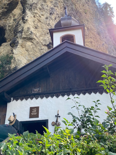 „Da die Tür zur Eremitage offenstand, warf ich einen Blick in den Wohnbereich des Einsiedlers. Eine schlichte Behausung, in Felsen geschlagen, die Wände weiß getüncht. Gleich beim Eingang hängen die Porträts der Männer, die hier lebten – zwei von ihnen waren über 25 Jahre Einsiedler.“