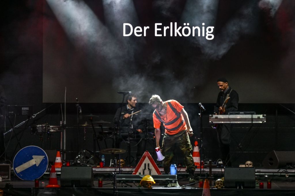 Am Domplatz gibt er den traditionellen Jedermann – kraftvoll, konzentriert, ganz im Geist der Festspiele. Doch außerhalb Salzburgs verwandelt er das Mysterienspiel in ein apokalyptisches Sprech-Konzert. Getrieben von Gitarrenriffs und den experimentellen Sounds der Band Die Elektrohand Gottes spielt Hochmair alle Rollen selbst. Ein vielstimmiger Monolog, ein performativer Rausch – Jedermann auf Speed.