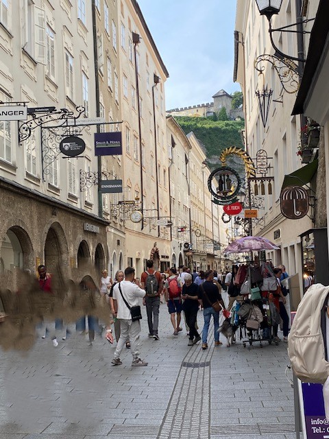 Vom Parkplatz in Nonntal aus ging ich Richtung Innenstadt. Am Residenzplatz angekommen, begegneten mir bereits zahlreiche Menschen: Touristen, Einheimische – es war lebendig, fast trubelig.