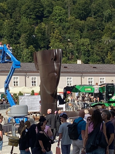 Mich zog es weiter zum Residenzplatz. Auch hier: Menschen, Absperrungen, gezückte Handys. Was gab es zu sehen? Die monumentalen Skulpturen von Jaume Plensa wurden Stück für Stück abgebaut.