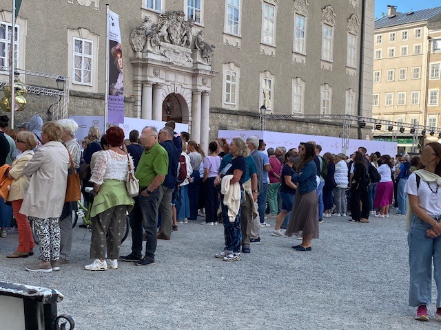 Ein Stück weiter, kurz vor der Residenz: erneut eine Menschenschlange. Es war die vorletzte Aufführung des Jedermann. Zaungäste hofften, einen Promi zu erspähen.