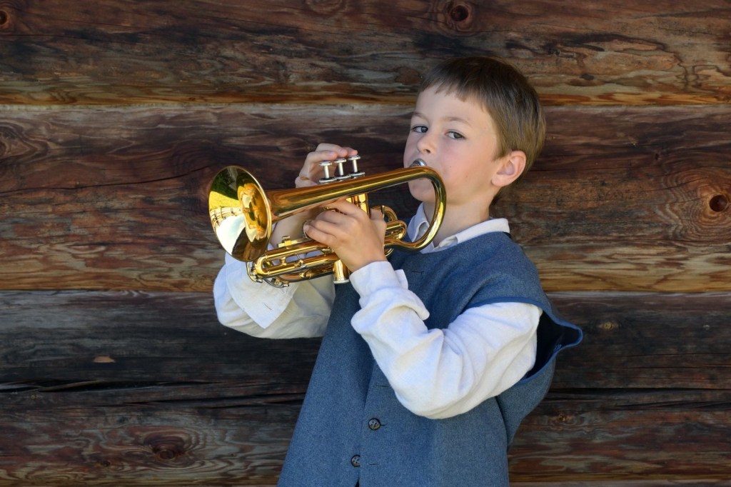 Interview mit Valentin (9 Jahre, Salzburg): „Ich spiele seit zweieinhalb Jahren Trompete, Unterricht habe ich seit eineinhalb Jahren. Die Alm ist super, auch wenn ich am ersten Tag ein bisserl Heimweh hatte. Jetzt fühl ich mich richtig wohl. Ich bin schon zum zweiten Mal dabei und freu mich sehr auf den Auftritt.“
