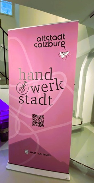 Plakat der HAND.WERK.STADT in der Salzburger Altstadt. Foto: (c) Christa Linossi 2026